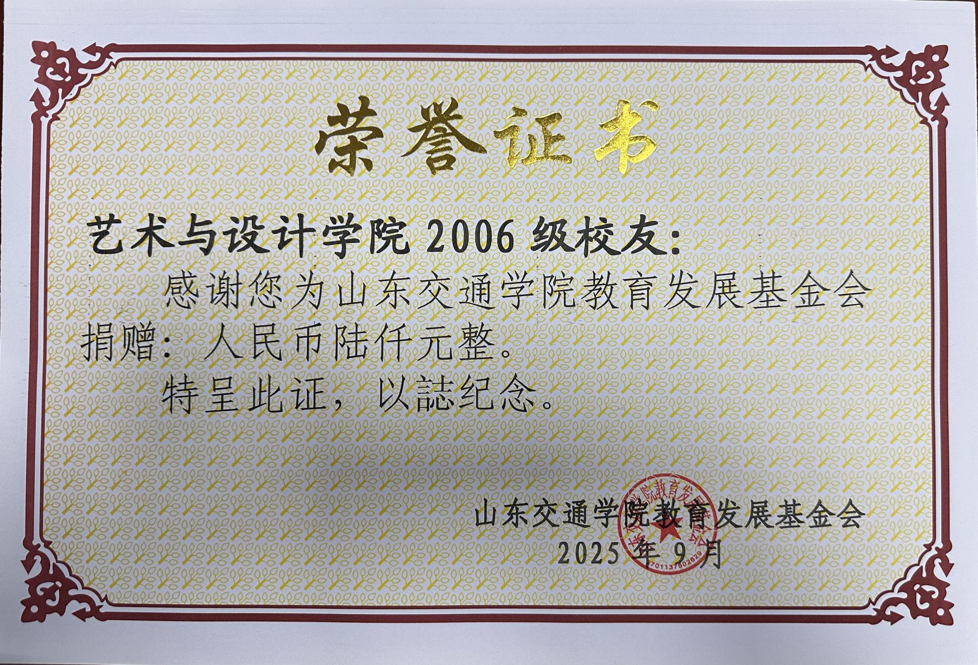 艺术与设计学院2006级校友向学校教育发展基金会捐款陆仟元