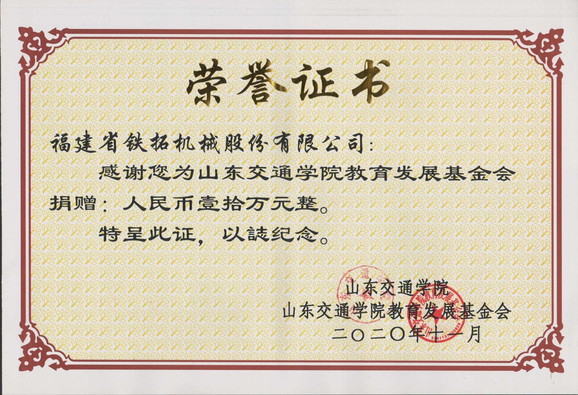 福建省铁拓机械股份有限公司向学校教育发展基金会捐款10万元