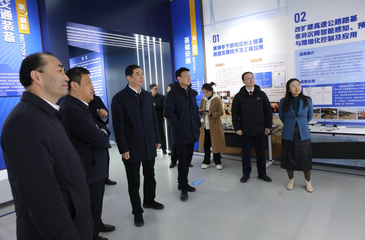 在科技成果展厅,刘斯杰认真听取了学校近年来围绕交通强国国家战略和交通强国山东示范区建设,在服务行业科技创新和区域经济社会发展方面取得的新成果与新进展,对学校坚持特色发展、服务行业与地方经济的实践给予积极评价。