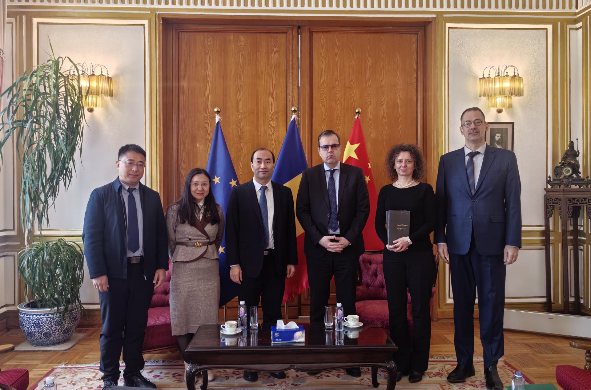 1月29日,学校党委副书记、院长孔伟金,党委委员、副院长张萌萌一行拜访罗马尼亚驻华大使馆。罗马尼亚驻华大使马克西姆等使馆官员亲切接见。双方围绕深化教育合作、科技协同、人才互通及产教融合等议题展开深度磋商,并就系列合作邀约达成积极共识。