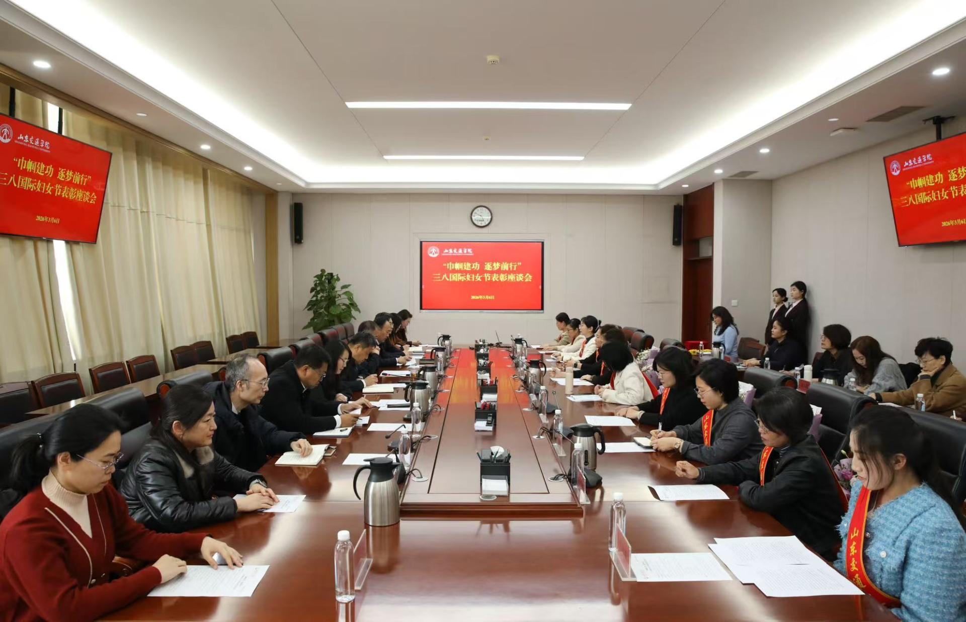3月6日下午,在第116个“三八”国际妇女节来临之际,学校在长清校区明德楼303会议室召开“巾帼建功 逐梦前行”主题“三八”国际妇女节表彰座谈会。学校党委书记王伟,党委副书记李贞涛,党委委员、党委组织部部长王兴盈,党委委员、党委统战部部长刘庆波出席。会议由王兴盈主持。