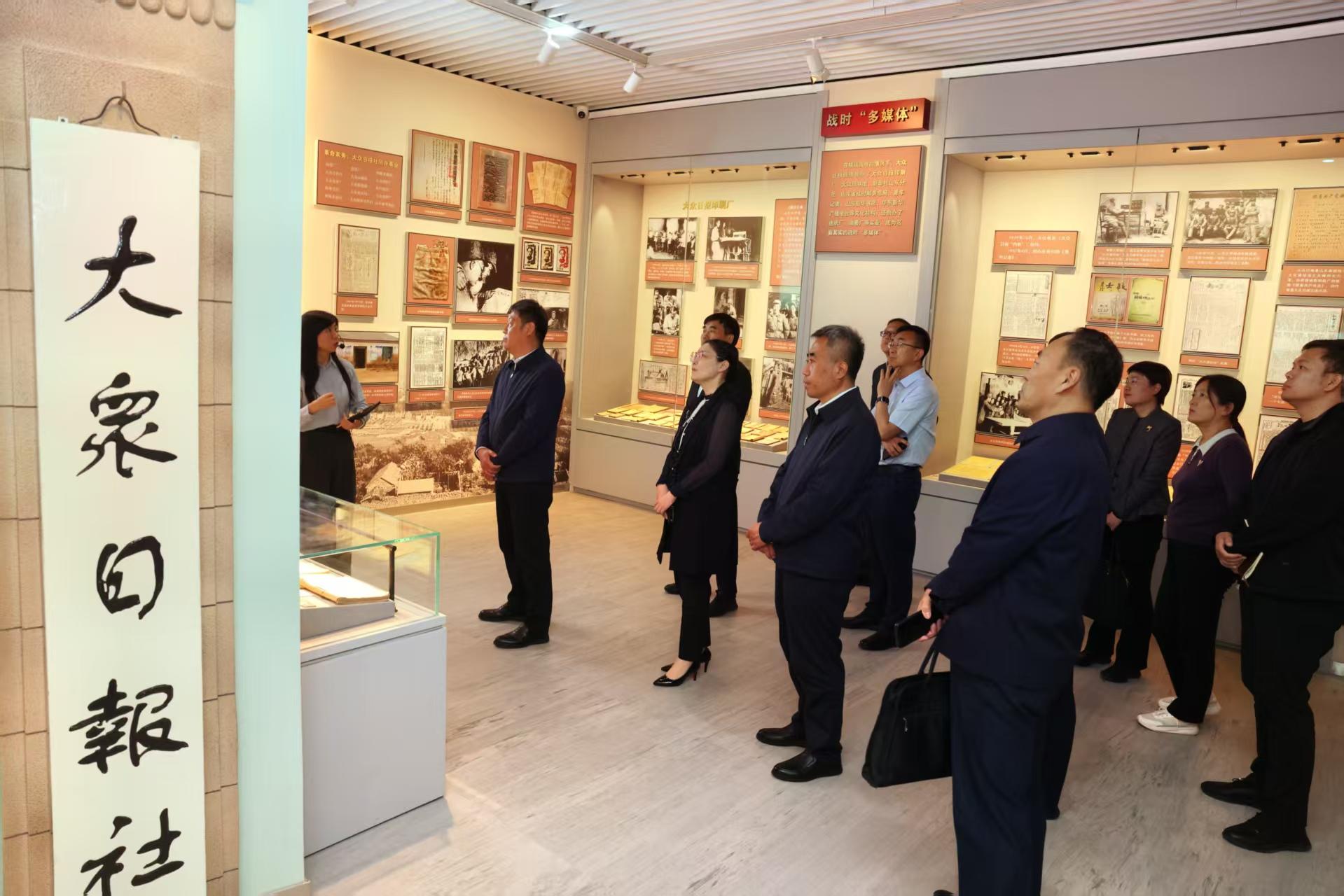 活动前,学校党委理论学习中心组成员认真自学了习近平文化思想,为现场教学打下坚实思想基础。中心组成员依次前往大众新媒体大平台、大众日报社史陈列馆,详细了解《大众日报》自1939年创刊以来,从抗日战争烽火中诞生,到社会主义建设时期的使命担当,再到新时代媒体融合发展的80余年光辉历程。在大众日报社史陈列馆,参观“山东党组织早期报刊”“革命烽火中的号角与旗帜”“社会主义建设中的使命与探索”等展区,通过130多件珍贵展品、历史图片、文献资料以及多媒体互动展示,了解大众日报始终与党同心、与人民同行历史,感悟党领导人民进行革命、建设、改革的壮阔历程。